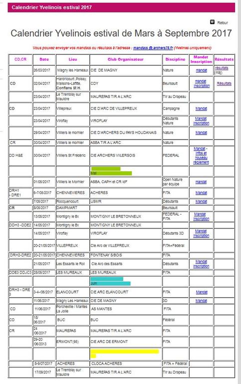 Calendrier estival 2017