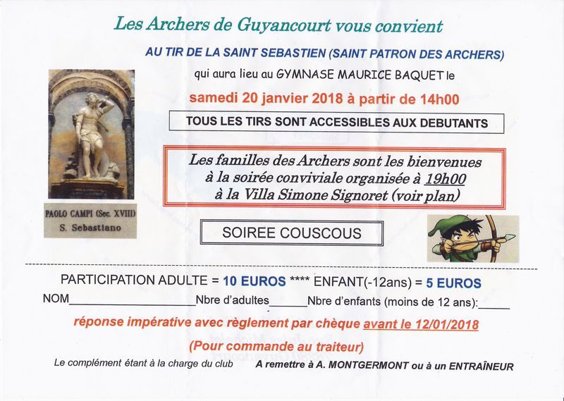 Comme chaque année nous fêterons notre Saint Patron, Sébastien, le samedi 20 janvier.