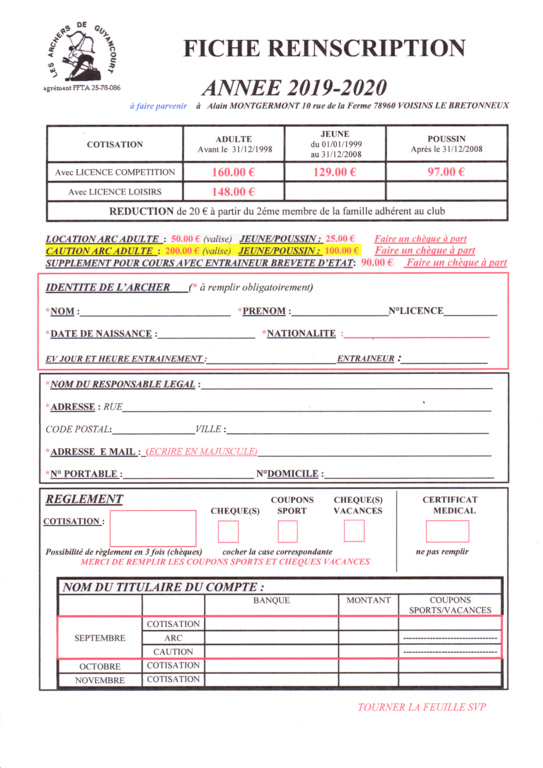 Vous souhaitez continuer à tier au sein de notre Compagnie, n'attendez pas le dernier moment pour vous inscrire