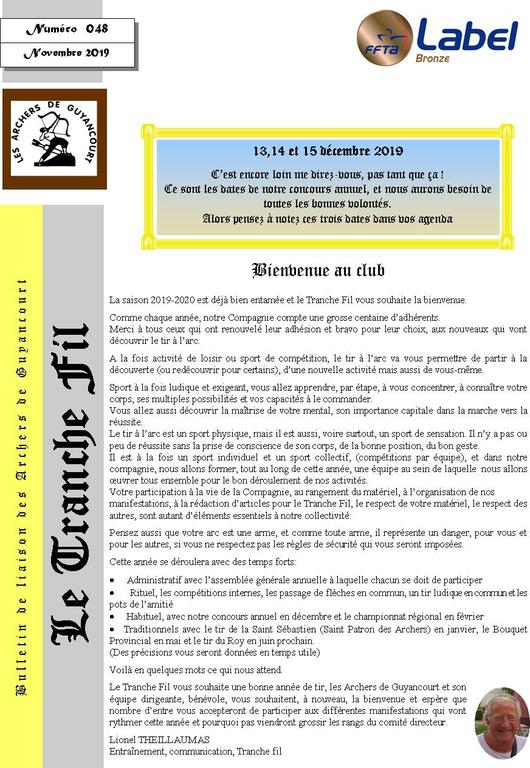 Les adhérents de notre Compagnie ont reçu le fichier par mail, via Sports Régions, il est également disponible via cette news ou encore : infos pratiques/documents/Tranche Fil.