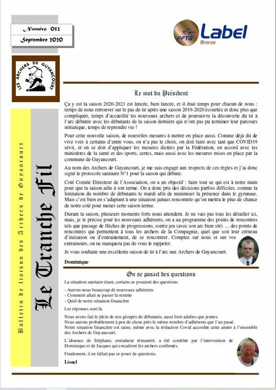 Les adhérents de la Compagnie ont reçu le fichier par mail, il est également disponible via cette news ou encore : infos pratiques/documents/Tranche Fil.